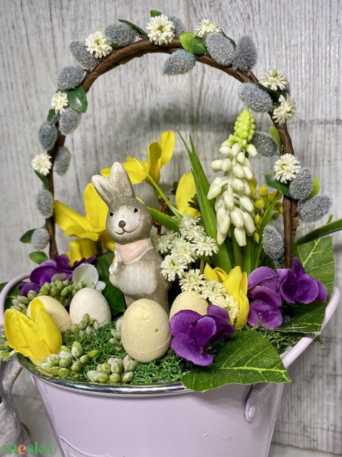 Húsvéti asztaldísz barkaággal nyuszival