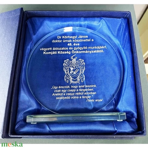Gravírozott üvegplakett díszdobozban
