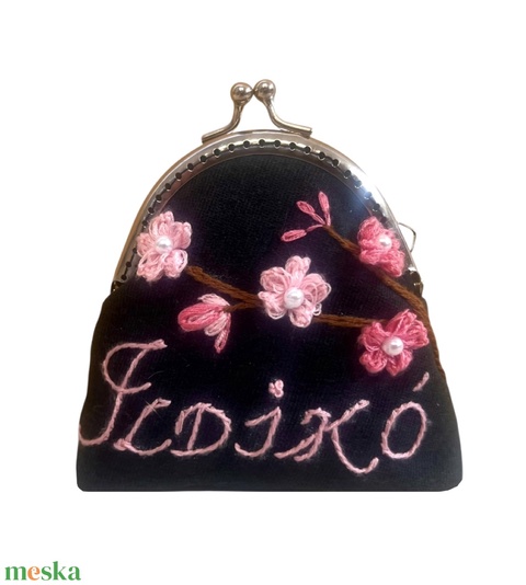 Virágos, gyöngyös, kézzel hímzett csatos pénztárca