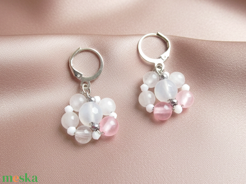 Flora Silver Edition – Achát és Hematit Virágfülbevaló 925-ös Ezüsttel