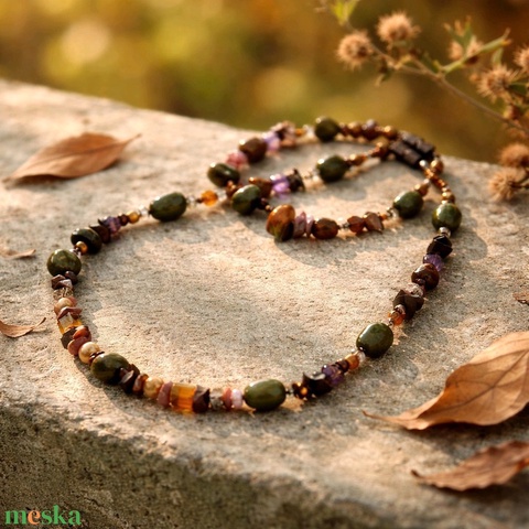 "Olíva" ékszergyurma-ásványos nyaklánc-karkötő szett