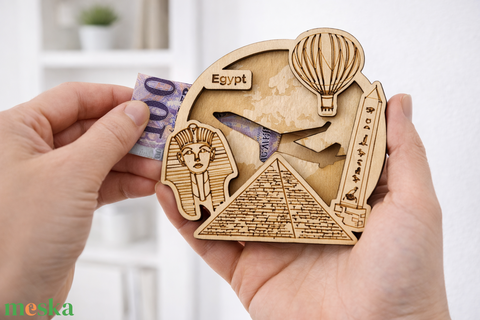 Egyiptom - Utazás tematikájú fa pénzajándék átadó - Pauze Money Gift