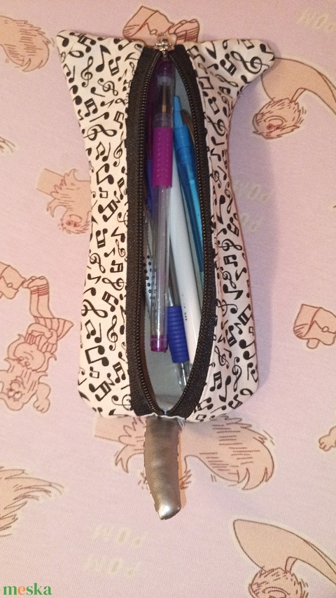 - Anyaga: műbőr, pamutvászon, cipzár, cérna