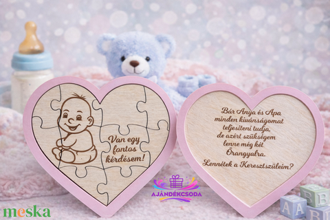 Keresztszülő felkérő fa kirakós szív