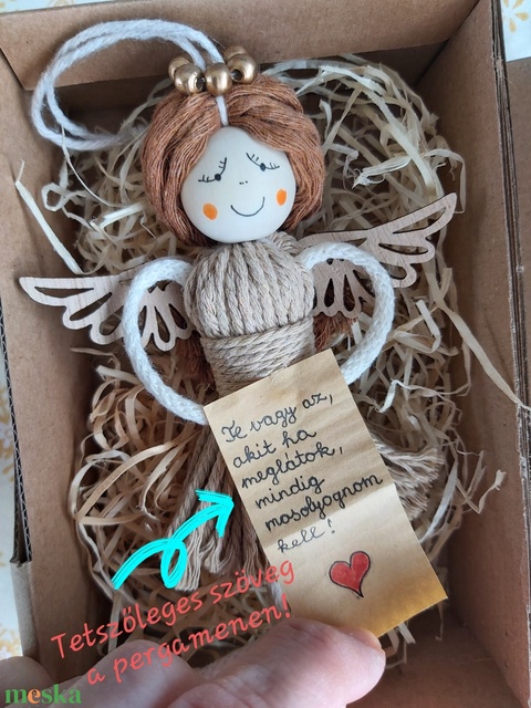 - Anyaga: makramé fonal, fagyöngy, fagolyó, papírdoboz