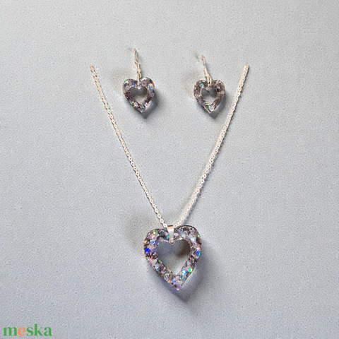 Szépséges fekete csillogó szivecskés ékszerszett.