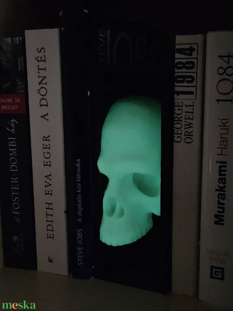 sötétben világító koponyás könyvtámasz