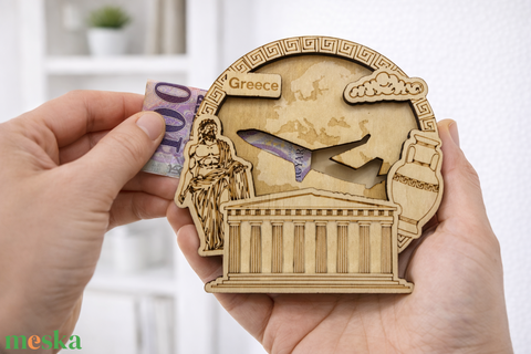 Görögország - Utazás tematikájú fa pénzajándék átadó - Pauze Money Gift