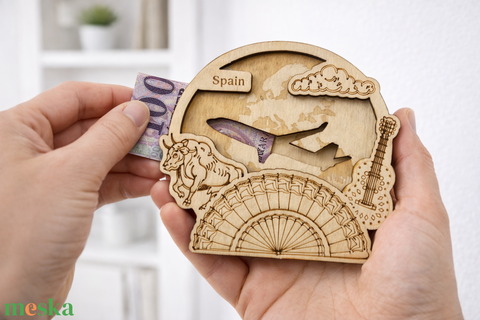 Spanyolország - Utazás tematikájú fa pénzajándék átadó - Pauze Money Gift