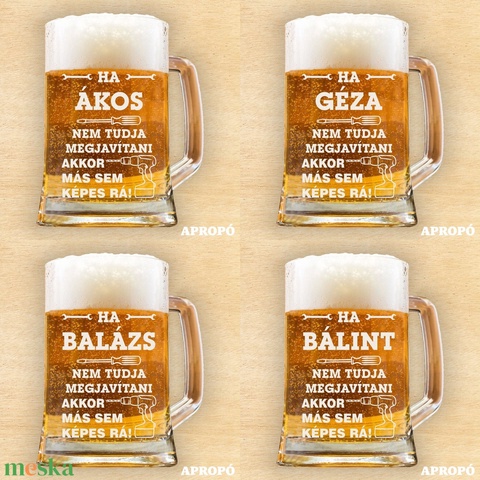 Korsó gravírozva választható névvel Ha ÁKOS GÉZA BALÁZS BÁLINT nem tudja megjavítani akkor más sem képes rá! söröskorsó