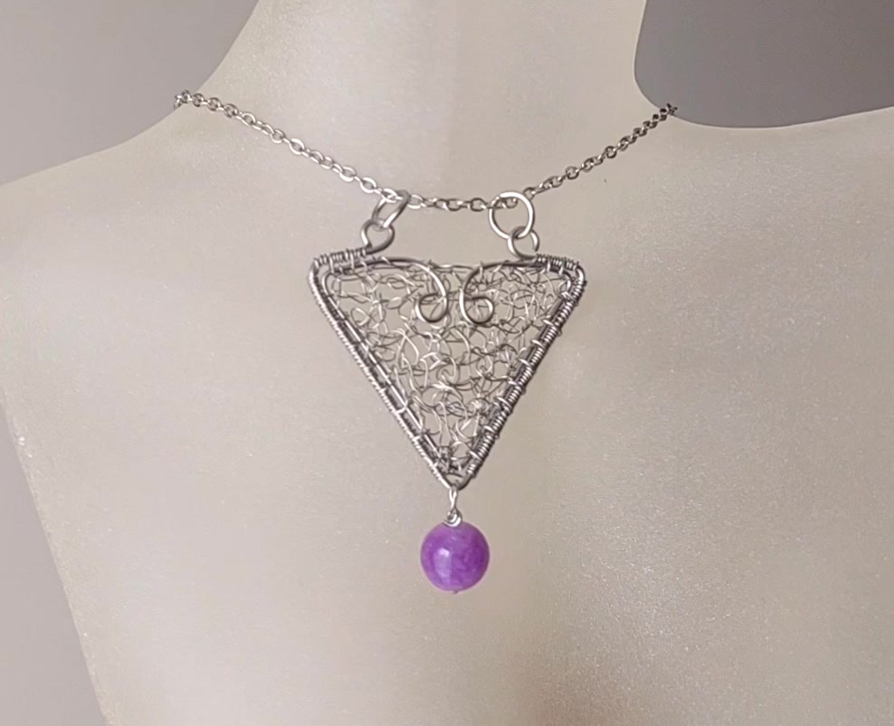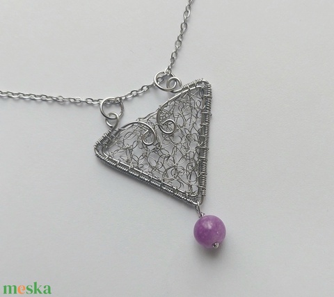 Horgolt acél nyaklánc lila turmalin ásvány golyóval