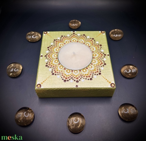 Gyönyörű és egyedi ajándék. Egyedi, hiszen munkám során soha nem használok stencilt, alkotás közben a saját érzéseimből születik meg a kész pontozott mandala mű. Így nem is létezhet meg egy ugyanolyan alkotásom. A mandala mécsestartó anyaga fa, amelyre kiváló minőségű akril festékkel dolgoztam.