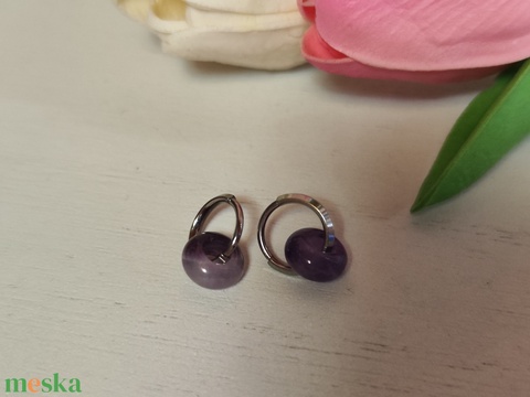 Titán hipoallergén fülbevaló, ametiszt gyönggyel!