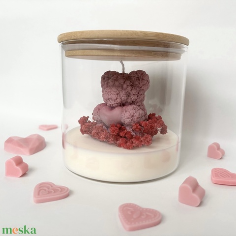 Rózsamaci gyertya bambusztetős üvegben – romantikus, kézzel készült dekoráció