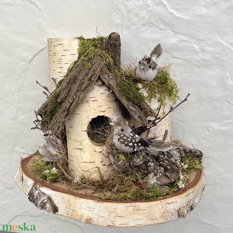 Kismadár - rusztikus asztaldísz odúval, fa mécsestartóval