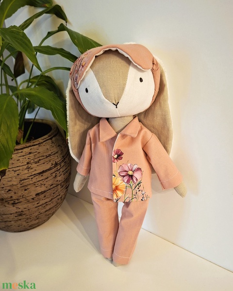 Pizsamás nyuszi, alvómaszkkal - kézműves gyerekjáték, öltöztethető játékfigura