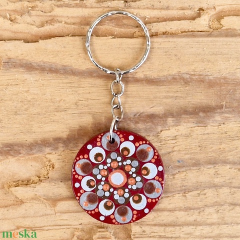 Fa kulcstartó, kulcskarika, táskadísz pontfestéssel (bordó mandala)
