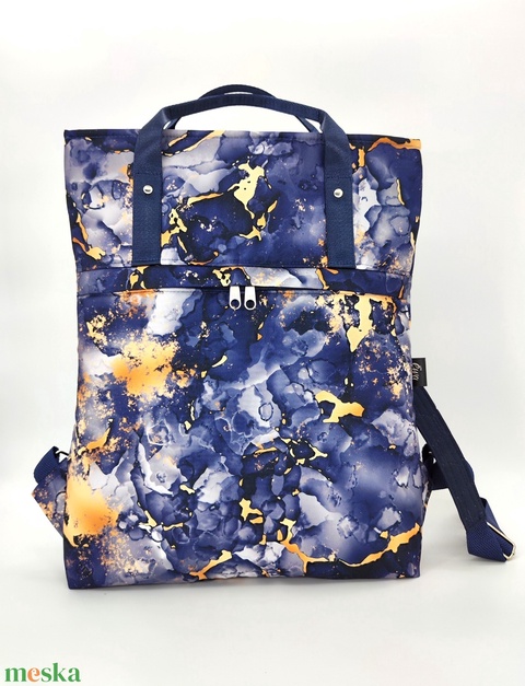 Ivett hátizsák és kézitáska, kék-arany márványminta