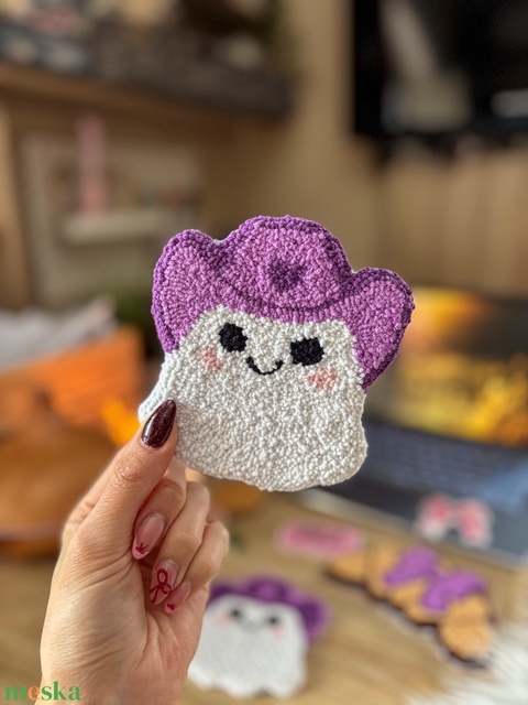 hímzett poháralátét, lila cowboy cowboykalapos szellem