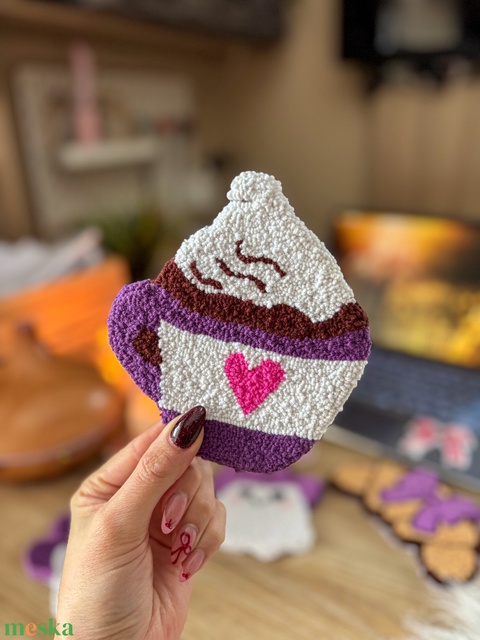 Hímzett poháralátét, lila bögre