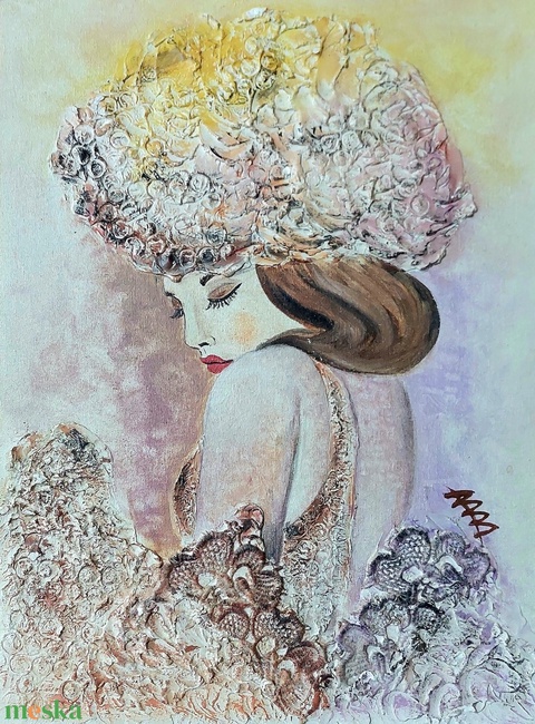 - Anyaga: vászon, akrilfesték, dekorglett, csipke, lakk