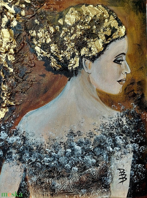 vászon, akrilfesték, dekorglett, csipke, aranyfüst, lakk