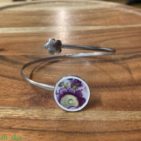Mentett porcelán darabok - virágos nemesacél karperec - állítható