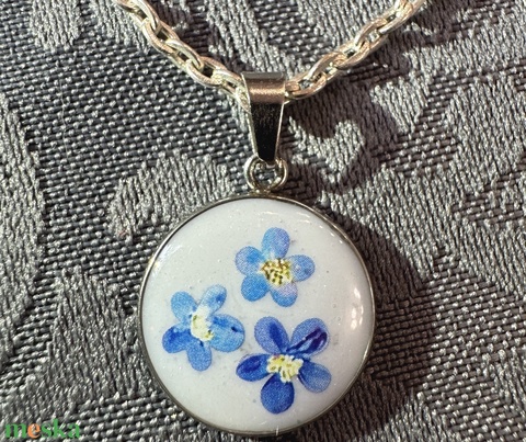 Kék virág trió - medál nyakláncon