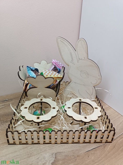 Ez a húsvéti tojás tartó természetes fából készült, lézervágó és gravírozó technológiával precízen megmunkálva. Letisztult formája miatt egyszerre dekoratív és praktikus használati tárgy, amely otthonod dísze lehet, de ajándéknak is kiváló választás.