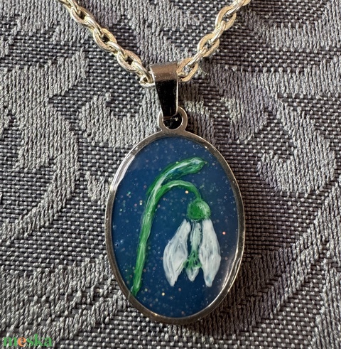 Hóvirág - egyedi, kézzel festett medál nyakláncon