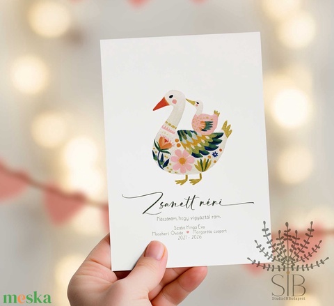 Köszönőajándék óvó néniknek, dadusoknak, lúd grafikás ovis ballagási búcsúajándék, ajándékkísérő
