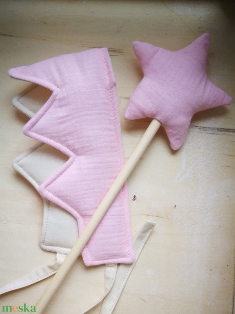 Varázspálcás korona szett – új fazon, rózsaszín duplagéz anyag