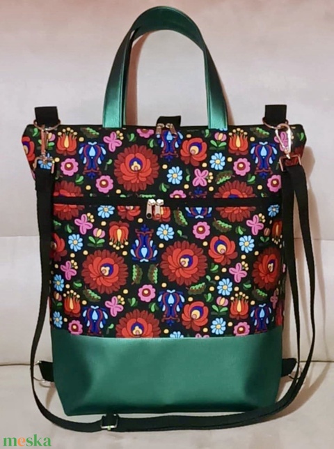 Egyedi zöld matyó mintás többfunkciós/ variálható táska