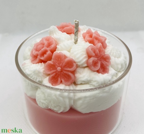 Virágos, habos dìszgyertya üveg pohárban