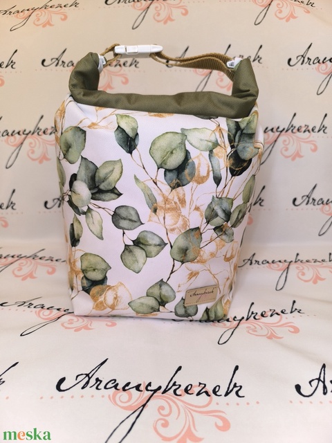 Eukaliptuszos-Vízálló uzsonnás tasak kézben vihető-PUL béléssel-Vállon is viheted egy megvásárolható pánttal