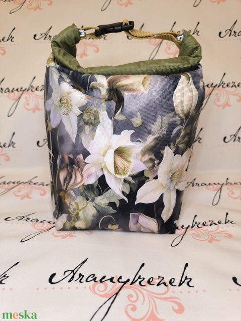 Liliomos-Vízálló uzsonnás tasak kézben vihető-PUL béléssel-Vállon is viheted egy megvásárolható pánttal