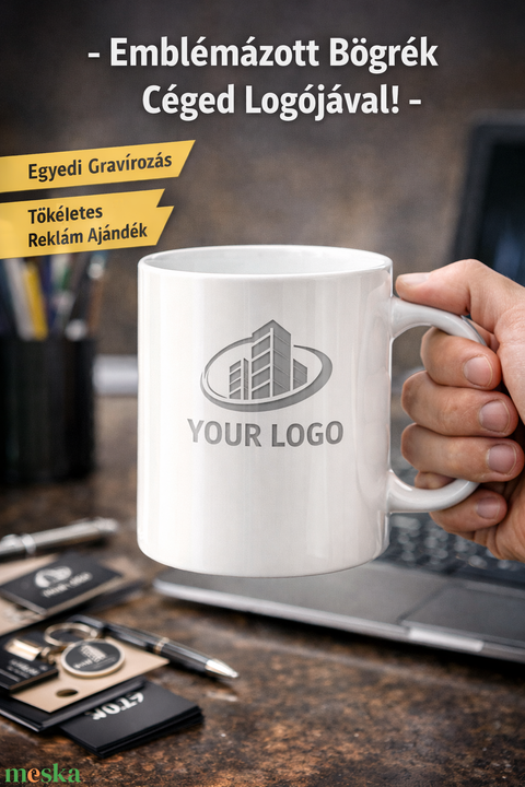 Szeretnéd, ha céged logója nap mint nap szem előtt lenne? Az egyedi gravírozott fehér kerámiabögre időtálló és praktikus megoldás, amely tökéletes választás céges reklámajándéknak, ügyfélajándéknak vagy munkavállalói meglepetésnek. Letisztult megjelenése miatt bármilyen arculathoz könnyedén illeszkedik.