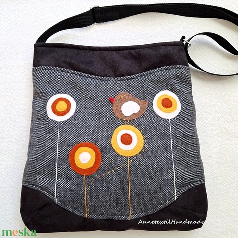 - Anyag/Összetevő szövet, merevítők, cipzár, pamutvászon, hímzőfonal, táskaheveder, szerelvények, textilvelúr, gyapjúfilc