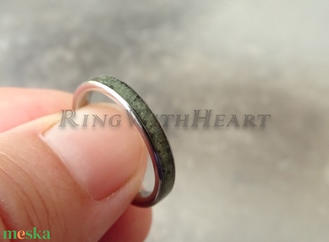 Titán vagy nemesacél gyűrű kanadai jádéval, vékony jade gyűrű, jegygyűrű, eljegyzési gyűrű