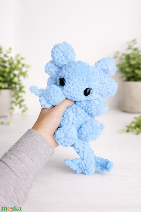 Horgolt kék sárkány plüss