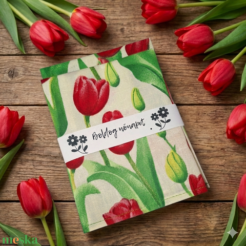 Textil szalvéta 2db, beige alapon piros tulipános, Nőnapi
