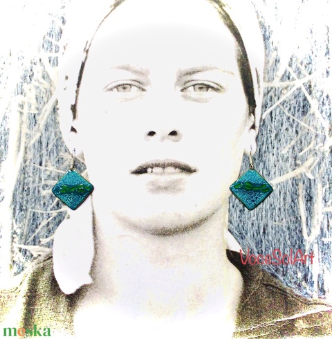 Türkiz négyzet tűzzománc Fülbevaló