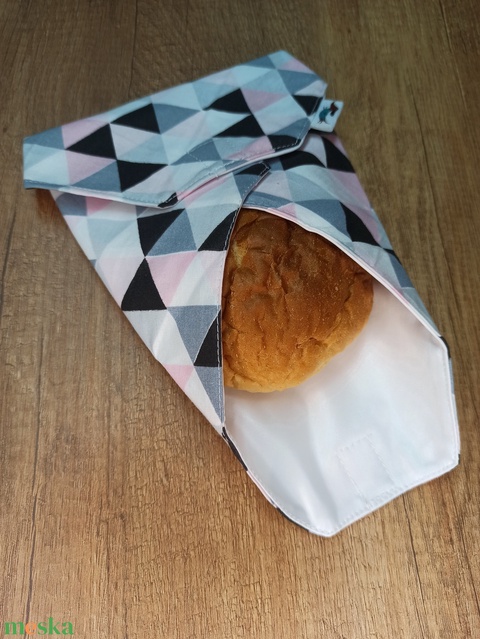Újraszalvéta rózsaszín-fehér- szürke háromszögek - táska & tok - uzsonna- & ebéd tartó - szendvics csomagoló - Meska.hu