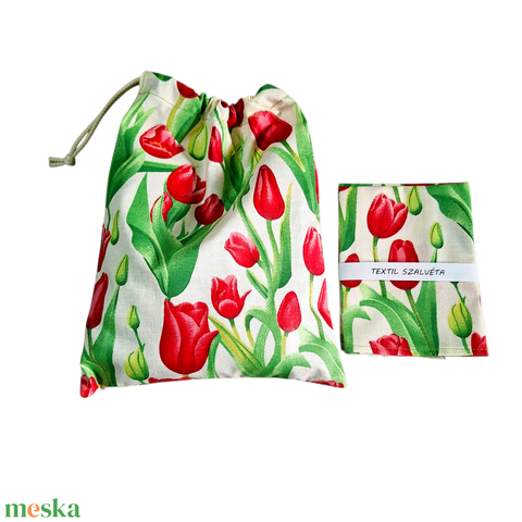 Tisztasági zsák és szalvéta (2db) szett, oviba, suliba, beige, piros tulipános