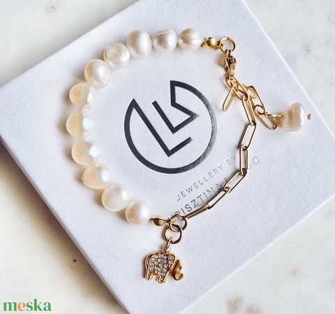 Krisztina Lango tenyésztett gyöngy karkötő elefánt charmmal