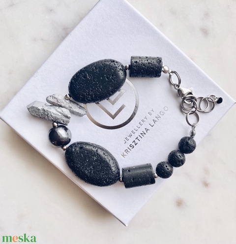 Krisztina Lango fekete-ezüst ásványkarkötő