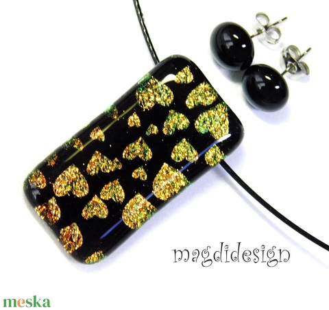 Csillogó rany szívek üvegékszer szett nyaklánc, fülbevaló - Valentin napra, Anyák napjára, Nőnapra