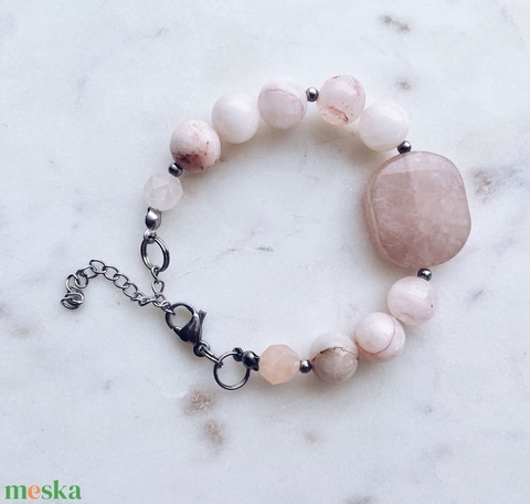 Krisztina Lango rózsakvarc, jáde ásványkarkötő