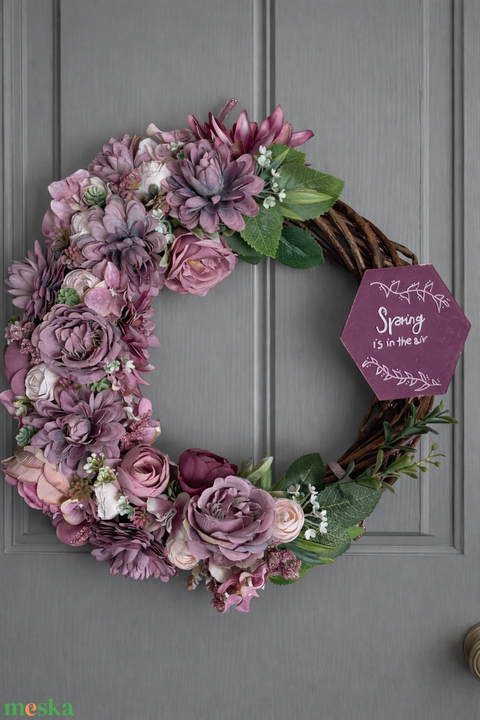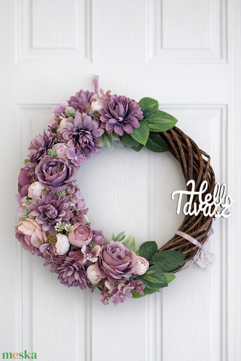 Tavaszi ajtódísz 35 cm-es pasztell lila