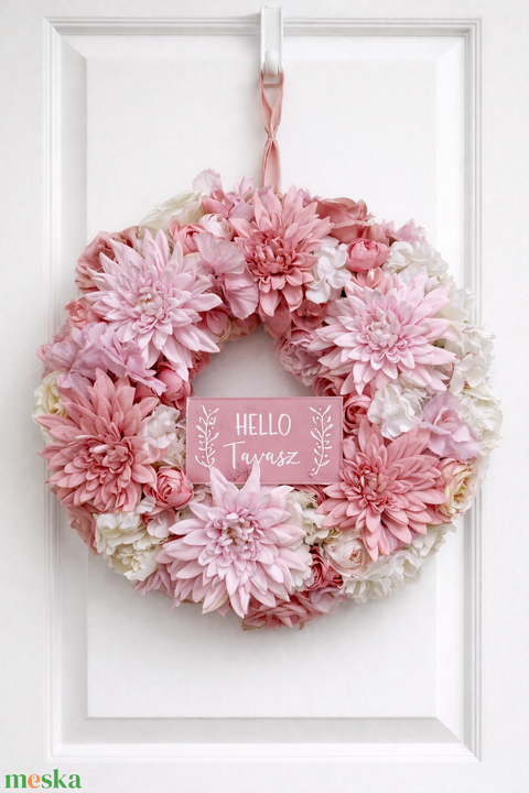 Tavaszi ajtódísz 35 cm-es pasztell rózsaszín